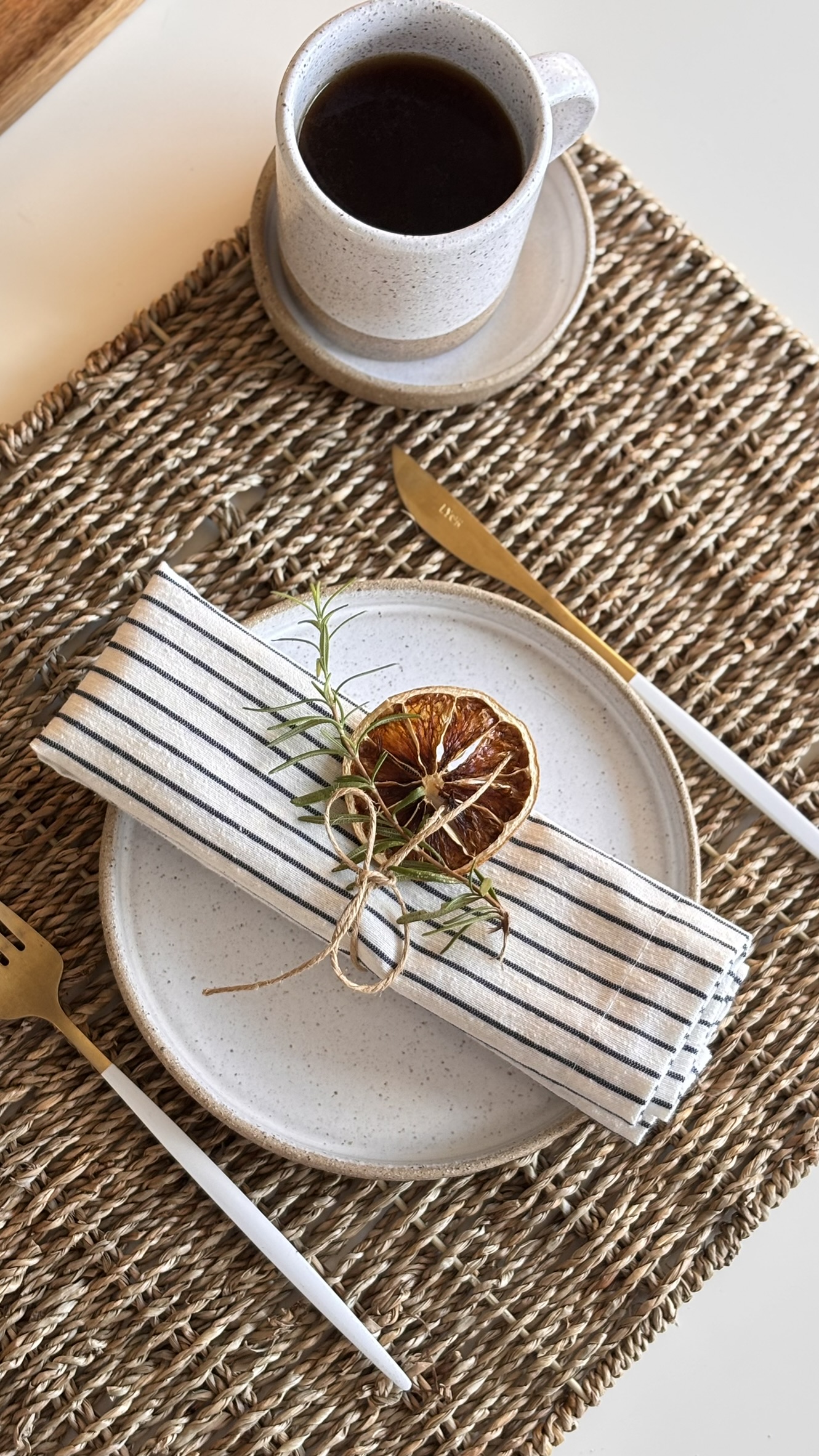 Para deixar a mesa posta com um toque de cor e elegância! As listras nunca saem de moda, e são perfeitas para combinar com bases mais neutras, como americanos de fibras naturais ou de cor lisa.