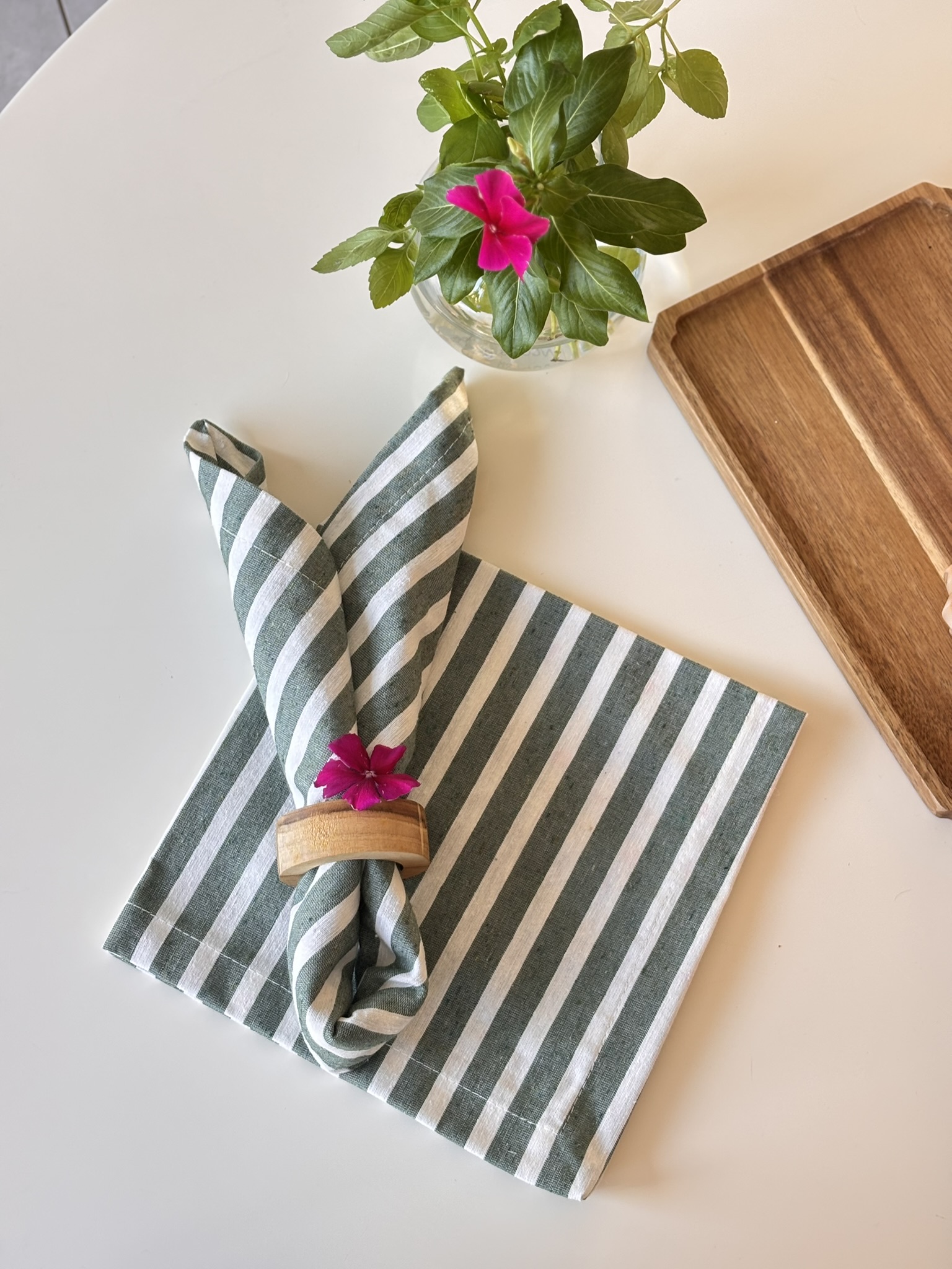 Para deixar a mesa posta com um toque de cor e elegância! As listras nunca saem de moda, e são perfeitas para combinar com bases mais neutras, como americanos de fibras naturais ou de cor lisa.