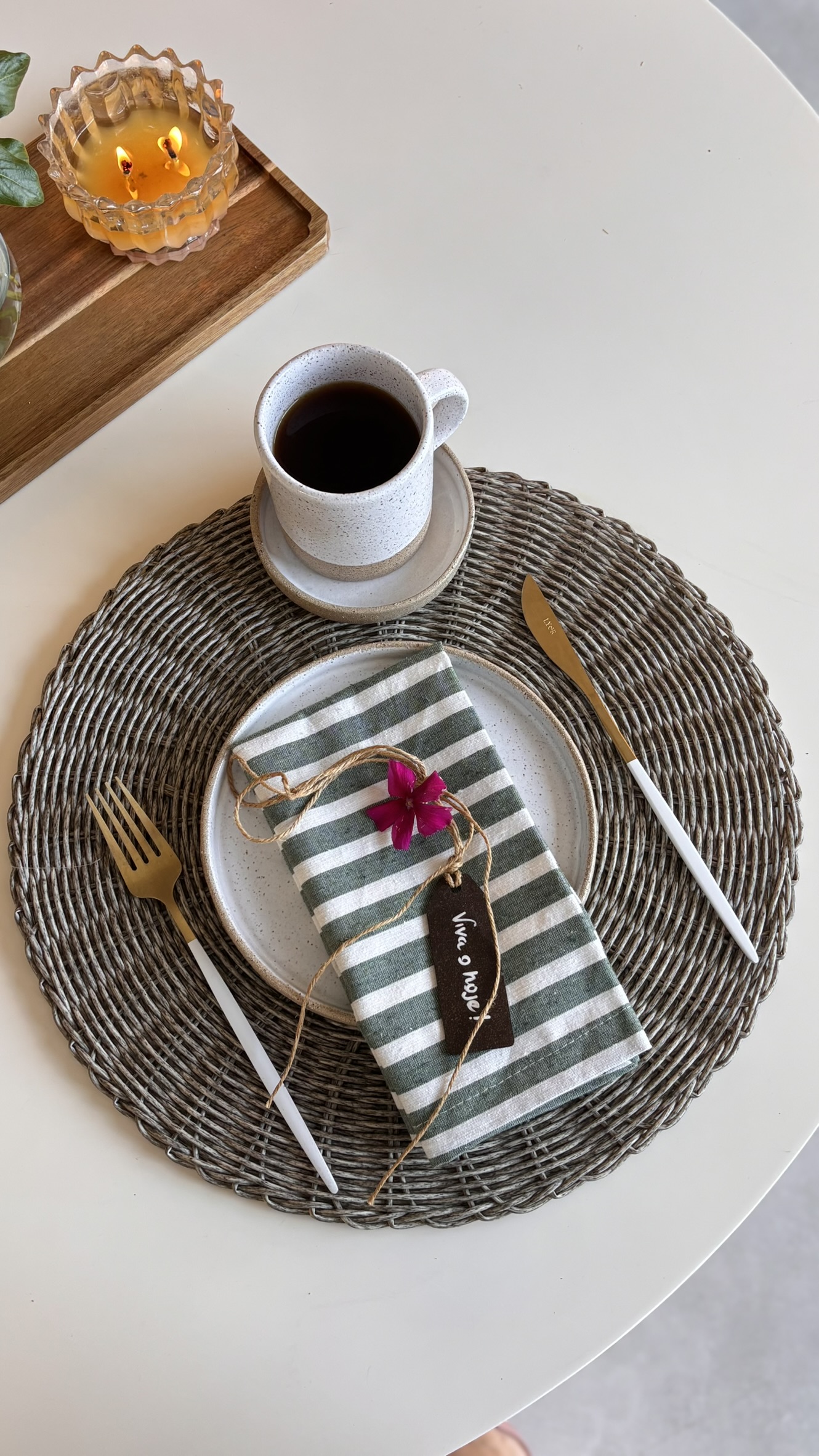 Um jogo americano que mistura o rústico com o contemporâneo, trazendo beleza natural e atemporalidade para sua mesa posta. Fácil de combinar com diferentes estilos, do floral ao geométrico, dos tons neutros aos mais vibrantes. Um item coringa pra quem buscar praticidade e beleza. Mais do que decorar a mesa, é sobre criar e valorizar os momentos em meio a rotina.