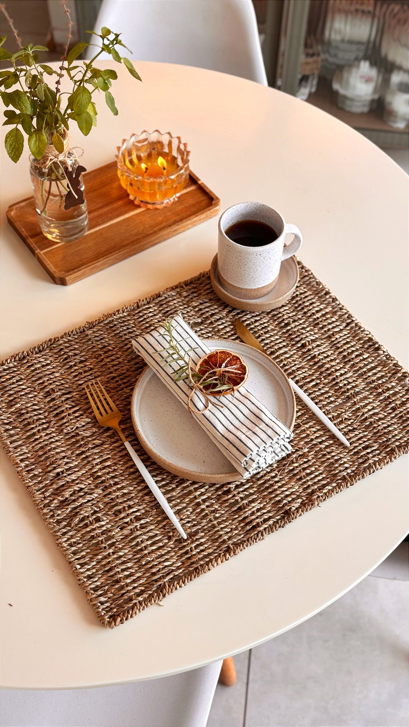 Um jogo americano que mistura o rústico com o contemporâneo, trazendo beleza natural e atemporalidade para sua mesa posta. Fácil de combinar com diferentes estilos, do floral ao geométrico, dos tons neutros aos mais vibrantes. Um item coringa pra quem buscar praticidade e beleza. Mais do que decorar a mesa, é sobre criar e valorizar os momentos em meio a rotina.